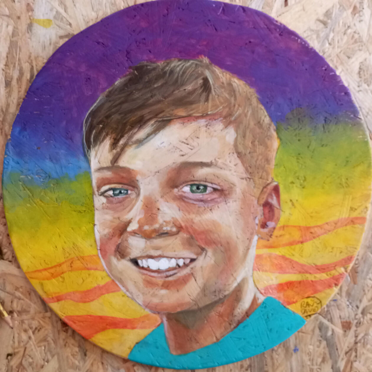 Message us at rsorrosal@gmail.com and get a quote (standard portrait 39cm diameter from 100€)Hacemos retratos sobre paneles de OSB con acrílico bajo pedido. Cliquea y consigue un vibrante cuadro de tus hijos o seres queridos! Escríbemos al correo rsorrosal@gmail.com para conseguir presupuesto (Retrato standard de 39cm de diámetro desde 100€)